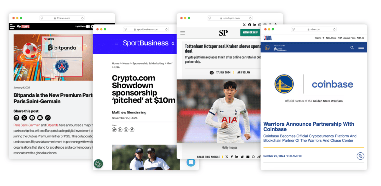 Nowadays, sports brands are selling their vision to crypto businesses as much as the other way around, which is a huge step change compared to 3 years ago.