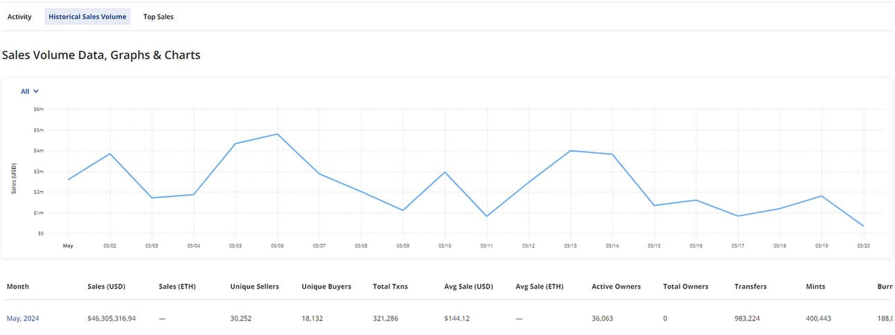 As per CryptoSlam, Fantasy Top has had over $46m in sales this May 2024 so far, facilitating nearly 1 million transfers, and over 400,000 pack mints, with an average sale of ~$140.
