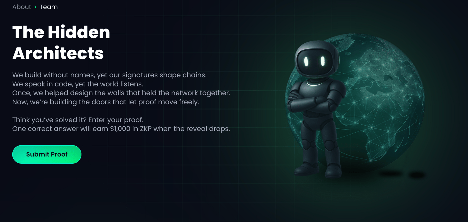 On ZKP’s website, whilst simultaneously promising privacy and transparency, in the ‘team’ section, they do not name their team but instead cite ‘The Hidden Architects’ who ‘build without names’.