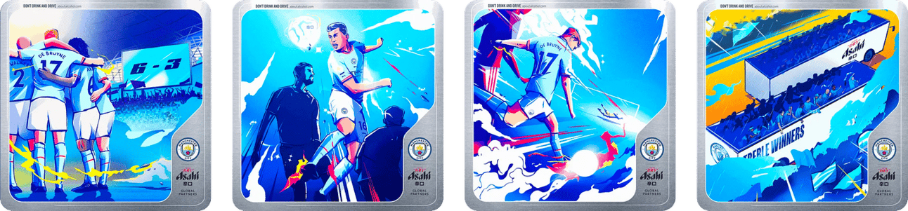 In November 2023, Manchester City and Asahi Super Dry announced ‘Brewed for Treble Success’ an NFT collection depicting the most iconic and memorable moments from the 2022/23 season for the football club. The launch of the NFTs was not until the 7th of March 2024.