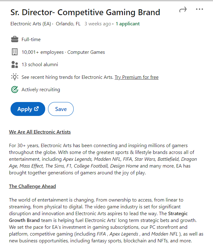 3 weeks ago or so EA posted a job ad that listed NFTs and blockchain in their ‘challenge ahead’ section.