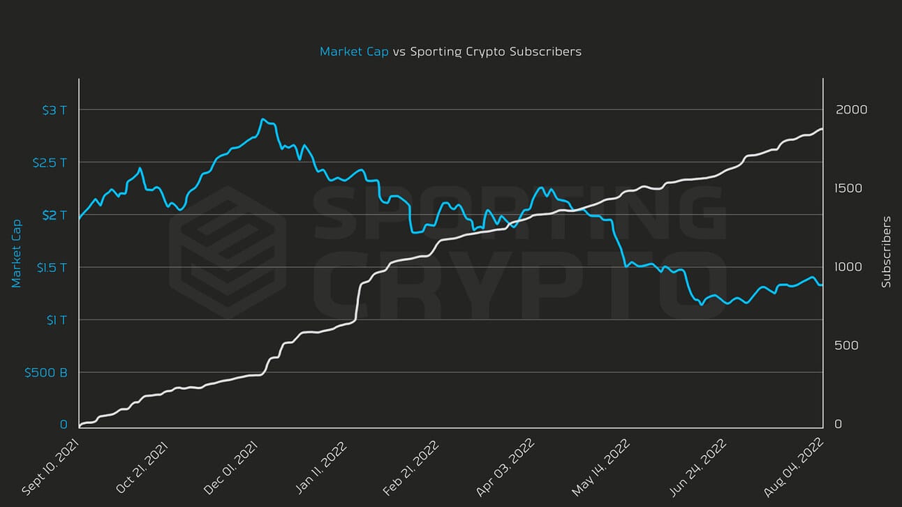 The crypto market halved — and Sporting Crypto has gone from zero to ~ 1800 subscribers.