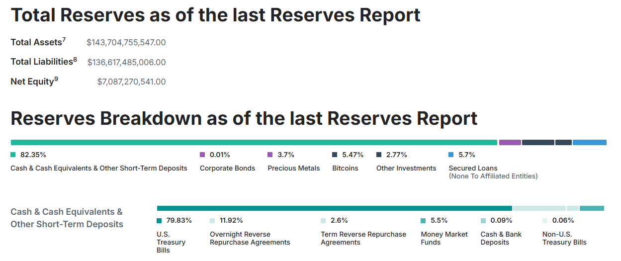 According to their most recent transparency reports, the bulk of their reserves are held in U.S. Treasury bills.
