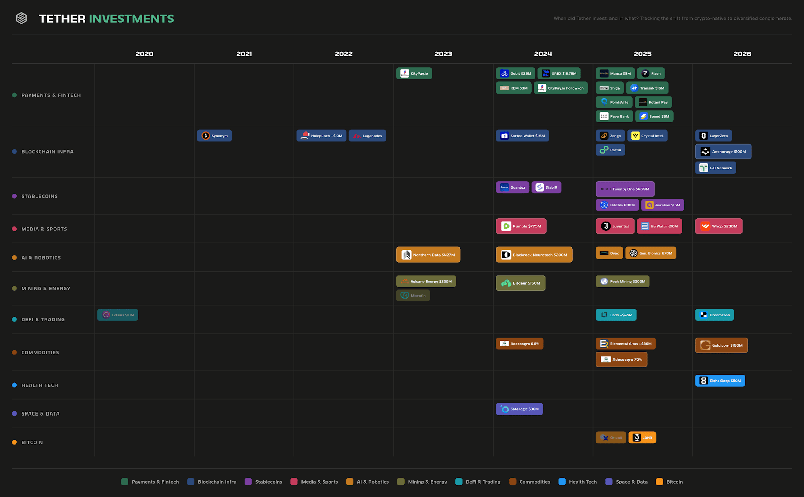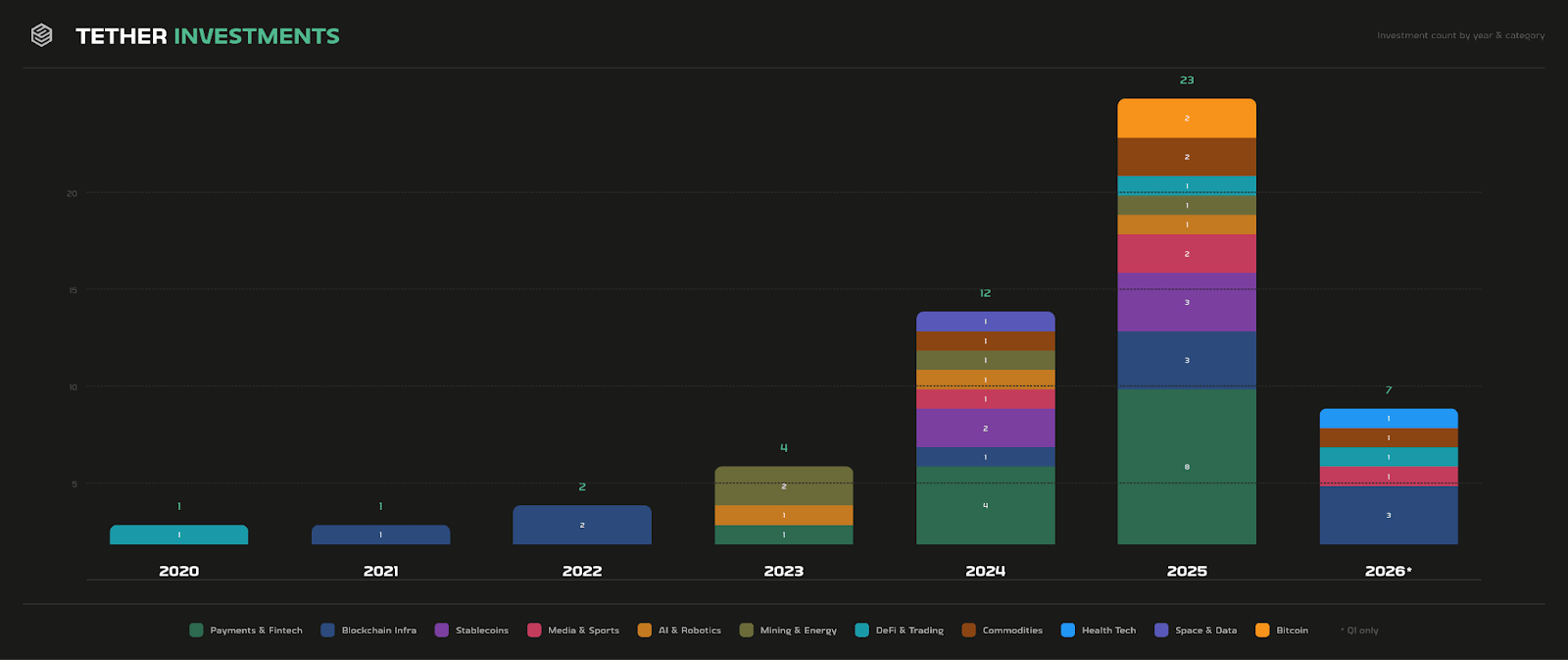 While there has been variety in Tether’s investments to date, it feels like 2026 so far has been directionally aimed towards consumer-facing companies.